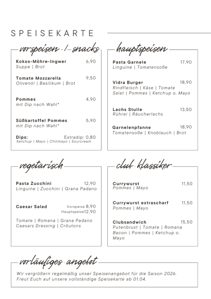 Unsere aktuelle Speisekarte - Änderungen vorbehalten!